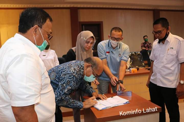 LAHAT, wartabianglala.com – Sekretaris Daerah Kabupaten Lahat Januarsyah.SH MM menghadiri kegiatan penandatangan MOU kerjasama antara PDAM Muara Enim dengan PDAM Tirta Lematang Lahat, Jum’at ( 10/7/2020 ). Bertempat di Ruang Op Room Sekretariat Pemerintah Kabupaten Lahat.