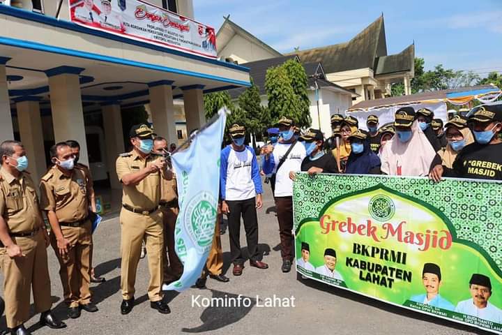 LAHAT, wartabianglala.com- Bertempat di halaman Kantor Pemerintah Kabupaten Lahat diadakan Pelepasaan Tim Grebek Masjid Dewan Pengurus Daerah Badan Komunikasi Pemuda Remaja Masjid Indonesia Kabupaten Lahat ( DPD BKPPRMI ) oleh Bupati Lahat Cik Ujang.SH, Selasa (1/9/2020 ).