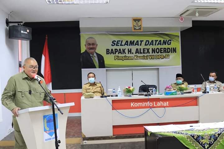 Atas nama Pemerintah dan pribadi sekali lagi kami ucapkan terima kasih kepada Bapak Ir. H. Alex Noerdin beserta rombongan atas bantuannya kepada Pemerintah Kabupaten Lahat, dan kami berharap juga untuk bantuan yang akan datang apa yang bisa kami perlukan ini kepada Bapak Ir. H. Alex Noerdin sebagai Anggota DPR RI Putra Daerah Kabupaten Lahat, Empat Lawang, Muba yang selama ini telah kita lihat pembangunannya Provinsi Sumatera Selatan dan Kabupaten Lahat,