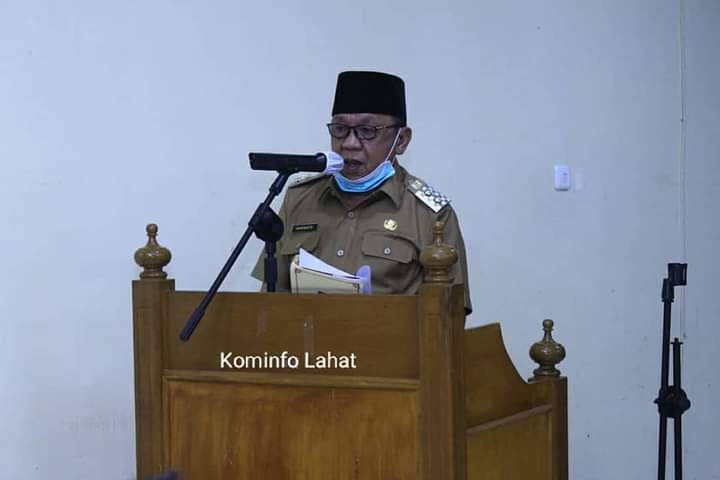 Kabag Kesra Setda Kabupaten Lahat Ruslan menyampaikan laporan kegiatan pelatihan Qori dan Qoriah Kabupaten Lahat tahun 2020 yang bertujuan untuk meningkatkan pemahaman dan penghayatan kandungan ayat – ayat suci al-quran.