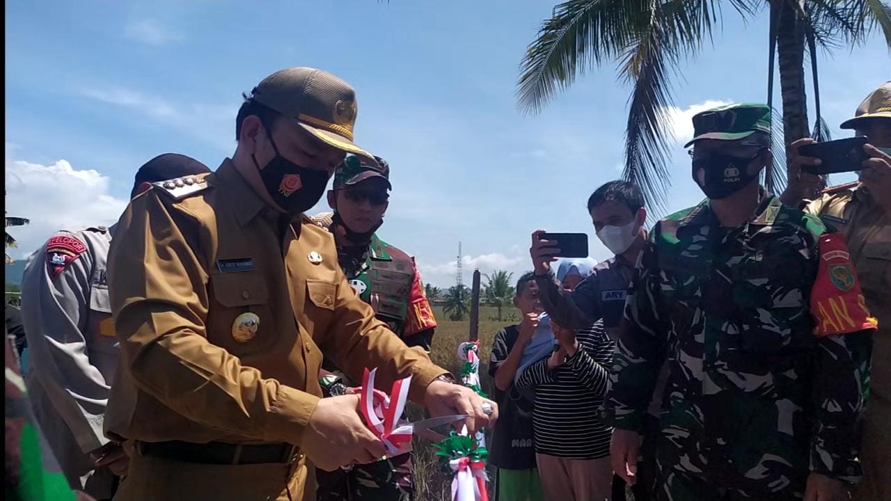 EMPATLAWANG, wartabianglala.com– Bertempat di lokasi TMMD, di Desa Tanjung Raman, Kecamatan Pendopo, Kabupaten Empat Lawang, Rabu (21/10/2020), Bupati Empat Lawang, H Joncik Muhammad SSI SH MM MH didampingi Dansatgas TMMD, Letkol Kav Shawaf Al Amien SE Msi mengunting pita sebagai tanda resminya akses jalan untuk dilalui kendaraan.