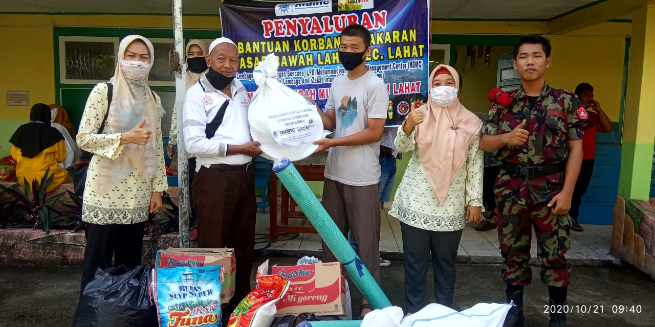 Sebelumnya, lembaga penanggulangan bencana Muhammadiyah Kabupaten Lahat yakni Muhammadiyah Disaster Management Center (MDMC) dan Lembaga Zakat Infaq dan Shadaqah Muhammadiyah (LAZISMU) mendirikan poskor untuk korban kebakaran. Alhasil hari ini semua yang terkumpul dari donatur dibagikan langsung kepada korban.