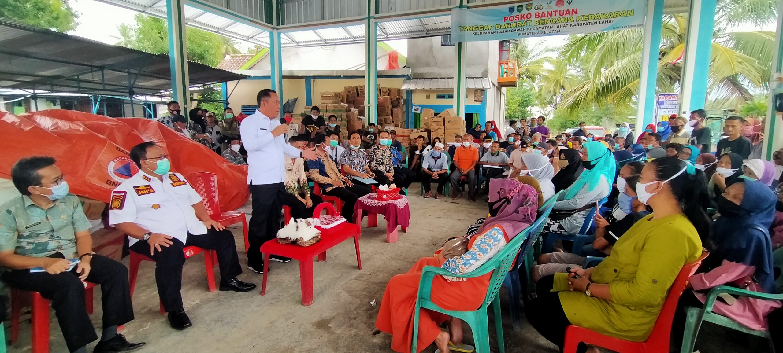 LAHAT, wartabianglala.com — Bupati Lahat Cik Ujang, SH didampingi Sekda Lahat dan kepala Dinas di lingkungan pemkab Lahat serta dihadapan warga korban kebakaran di Kelurahan Pasar Bawah Kecamatan Lahat, secara langsung memerintahkan dinas PRKPP untuk menghitung dan segera membangunkan kembali rumah yang hangus terbakar, Kamis (22/10).