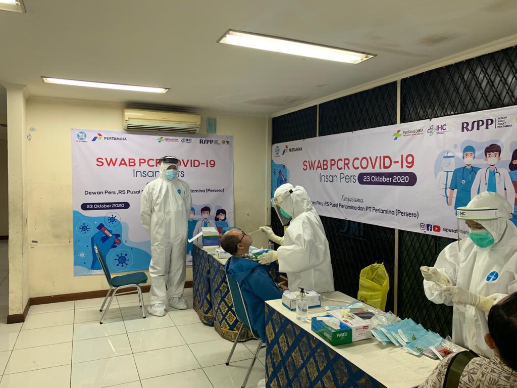 JAKARTA, wartabianglala.com — Dengan menggandeng Dewan Pers, Pertamina memberikan pelayanan tes usap polymerase chain reaction (PCR) gratis kepada 105 insan media. Pelaksanaan tes dilakukan oleh tim medis dari Rumah Sakit Pusat Pertamina (RSPP) yang dipusatkan di Hall Gedung Dewan Pers di Kebon Sirih, Jakarta Pusat, Jum’at (23/10).