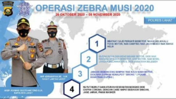 Kapolres Lahat AKBP Achmad Gusti Hartono SIK didampingi Kasat Lantas AKP Adriansyah SE SIK dikonfirmasi membenarkan bahwasannya dalam waktu dekat akan melakukan Operasi Zebra Musi 2020 yang akan dilaksanakan sejak tanggal 26 Oktober 2020 sampai dengan 08 November 2020.
