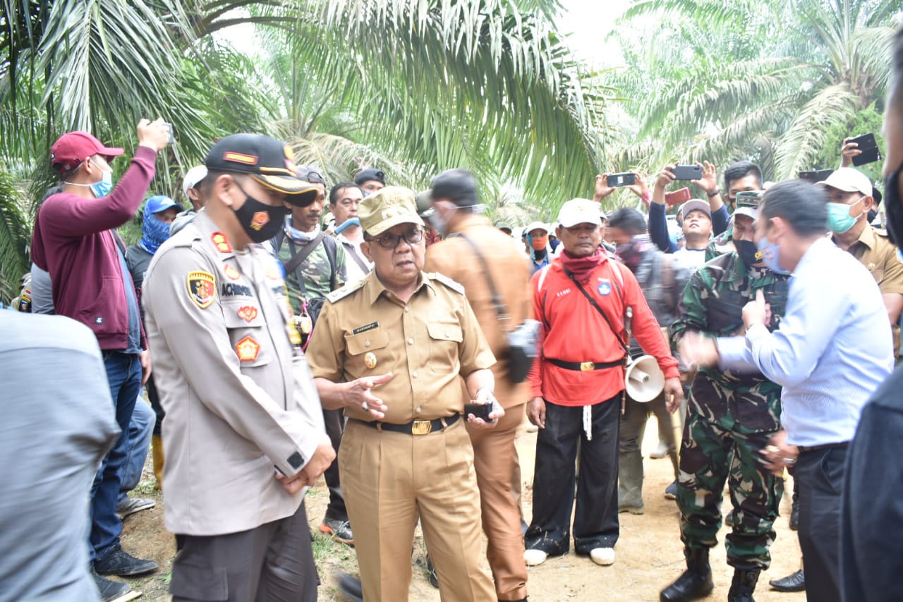 Tiba dilokasi lahan perkebunan sawit, terlihat di lokasi sudah hadir Dandim 0405 Lahat, Kapolres Lahat, Security PT. Lonsum Tbk dan masyarakat Purwaraja.
