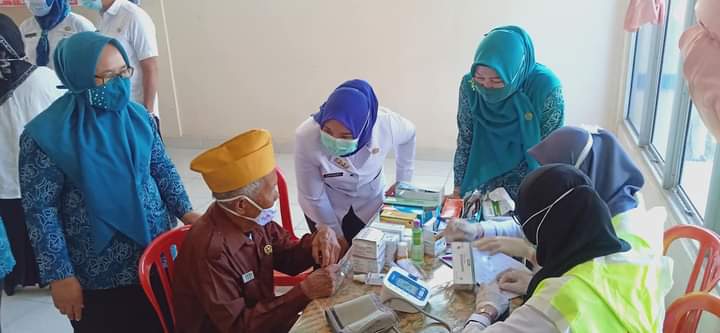 selain memberikan bantuan berupa pakaian dan perlengkapan sholat, acara yang juga menerapkan protokol kesehatan tersebut juga melakukan pemeriksaan kesehatan secara gratis bagi seluruh Veteran yang hadir.