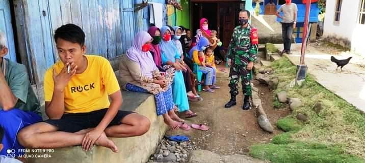 Dandim 0405/ Lahat Letkol Kav Shawaf Al-Amien S.E, M.SI melalui Darnamil 405/07 Pulau Pinang Kapten Inf Mulyadi memberikan sosialisasi tentang protokol kesehatan dan bahaya Covid-19 di Desa Karang Agung