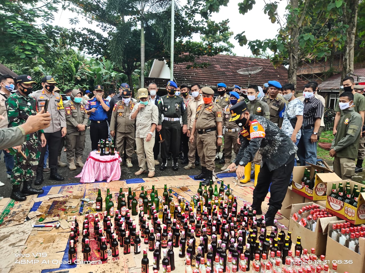 Wabup Lahat H.Haryanto SE MM mengatakan Pemusnahan minuman beralkohol dari berbagai jenis tahun 2020 hasil razia sinergitas Polres Lahat, Kodim 0405/Lahat, dan Pol PP Kabupaten Lahat.