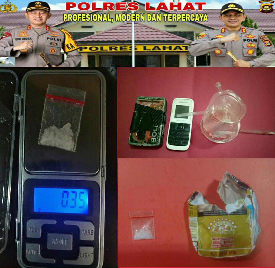 “pada hari senin 4 Januari 2021 sekitar pukul 19.30 WIB, telah dilakukan penangkapan kepada tersangka berinisial NM (46) yang merupakan warga Sukaratu. saat itu, tersangka sedang berdiri di pinggir jalan (TKP). Kemudian saat digeledah, ditemukan 1 (satu) buah kotak rokok merk DJI SAMSOE yang di dalamnya terdapat 1 (satu) paket kecil serbuk kristal putih seberat 0,35 (nol koma tiga lima) gram terbungkus plastik klip transparan yang diduga narkotika jenis shabu. kemudian saat diinterogasi tersangka mengaku bahwa barang haram tersebut adalah miliknya yang mana nantinya akan dijual kembali”. ungkap Aiptu Lispono dalam releasenya.