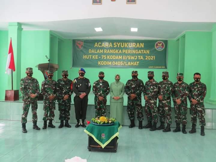 LAHAT, wartabianglala.com – Kodim 0405 Lahat menggelar acara syukuran dalam rangka Peringatan Hari Ulang Tahun Kodam II/Sriwijaya yang Ke-75 Tahun 2021 bertempat di Gedung Juang Kodim 0405 Lahat, Rabu (06/1/2021)