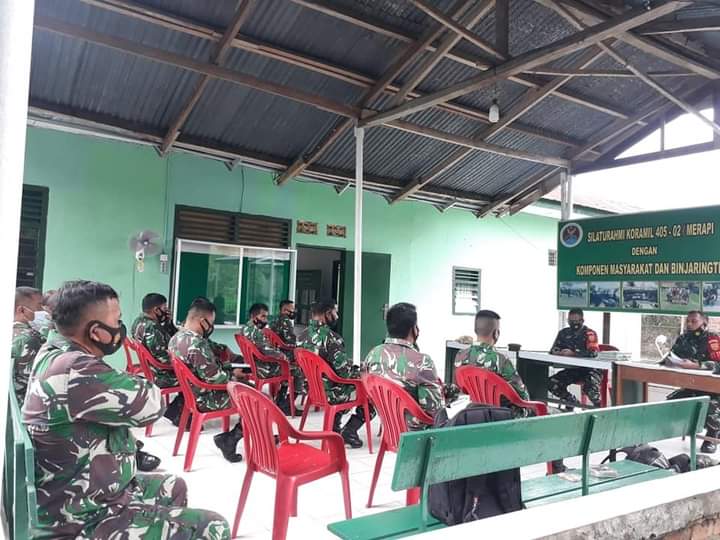 Dalam apel Danramil 405-02/Merapi, Kapten inf Sudarno nenekankan kepada para angotanya itu selalu menerapkan Protokol kesehatan Covid 19 di wilayahnya dan jangan lupa untuk melalukan kegiatan berolahraga secara rutin, agar tetap sehat.