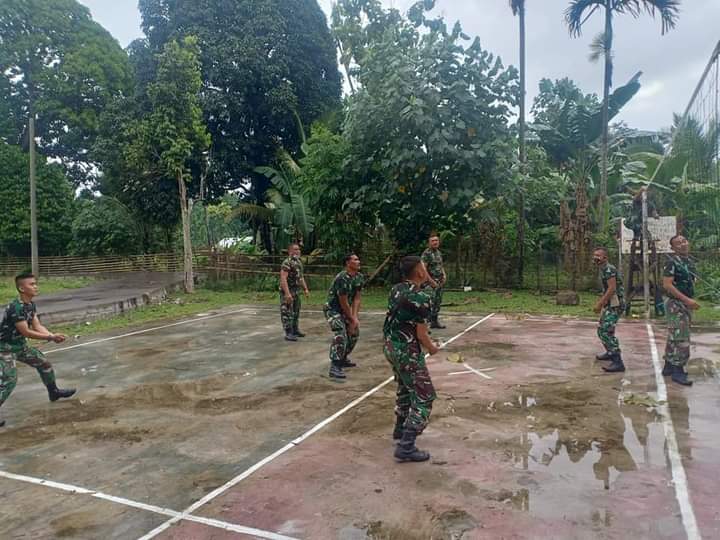 ” Setelah memberikan arahan, kami melaksanakan olahraga bersama bermain Bola Volly, Kegiatan ini dilakukan untuk tetap menjaga kesehatan tubuh bagi para anggota Koramil 405-02/Merapi.” ucap Danramil.