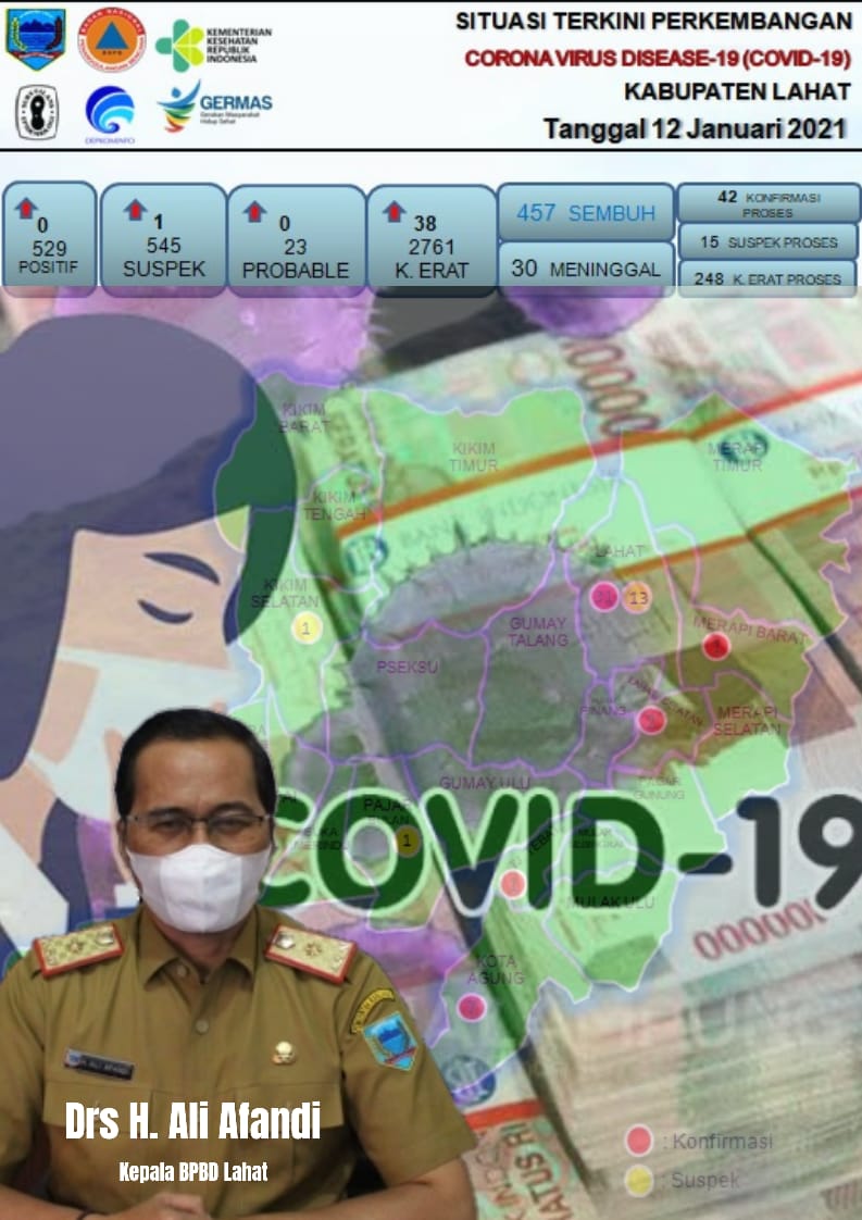 Sayangnya, meski telah menghabiskan anggaran sebanyak 23 M, jumlah warga yang terkonfirmasi terpapar Covid-19 di Kabupaten Lahat semakin meningkat. Update terakhir penderita Covid-19 pertanggal 12 Januari 2021 di Kabupaten Lahat SusPek (ODP+PDP) berjumlah 545 orang dan proses 15 orang. Untuk kontak erat berjumlah 2.761 orang dengan proses sebanyak 248 orang. Data probable berjumlah 23 orang. Jumlah konfirmasi berjumlah 529 orang, meninggal 30 orang, sembuh 457 orang, dan dalam proses 42 orang.