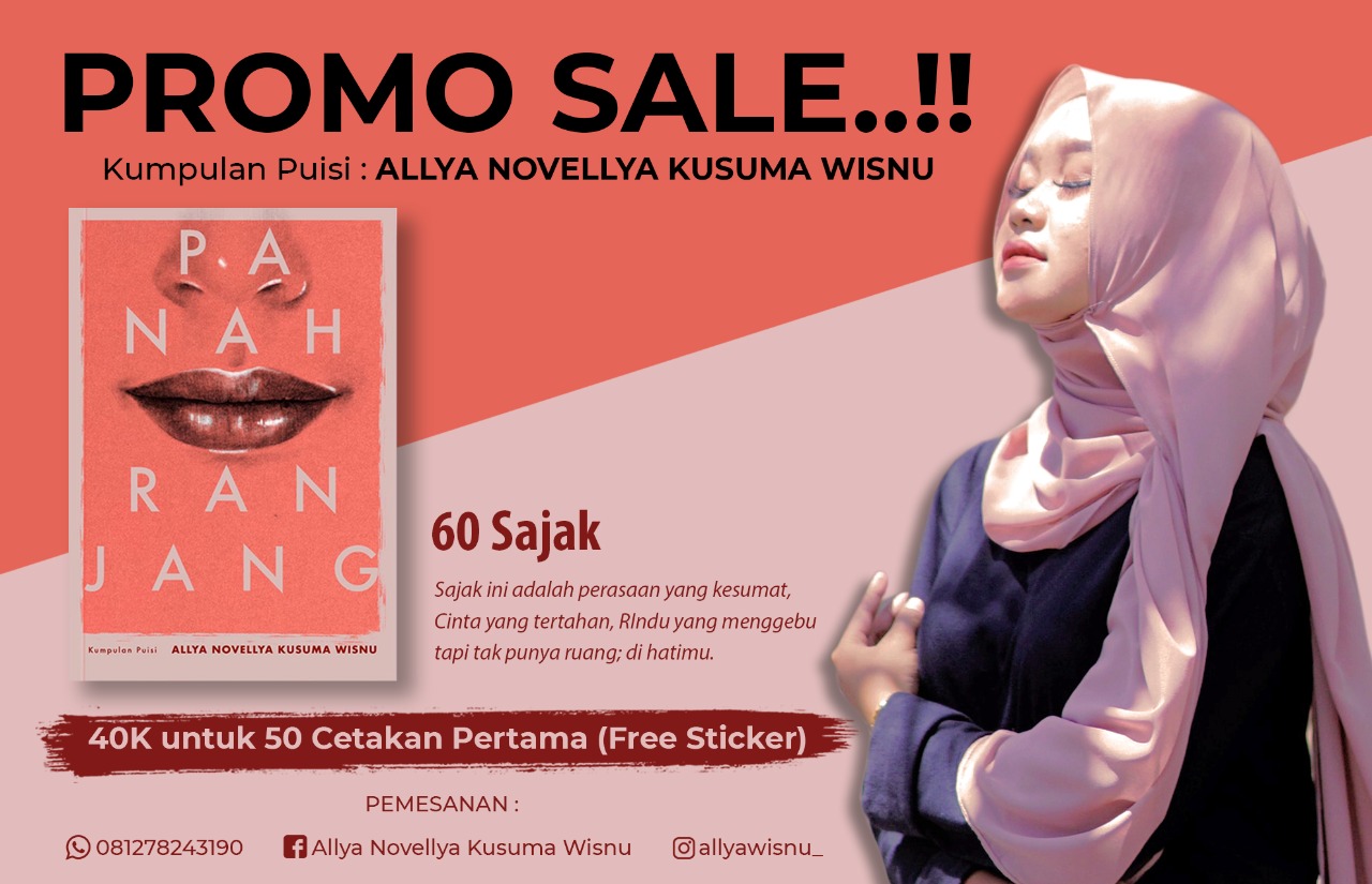 Buku yang berisikan 60 sajak indah dari goresan tinta gadis kelahiran Lahat pada tahun 1999 ini, sudah bisa kita nikmati dengan harga promo, yakni 40 ribu untuk 50 orang pembeli pertama dengan mendapatkan bonus sticker cantik.