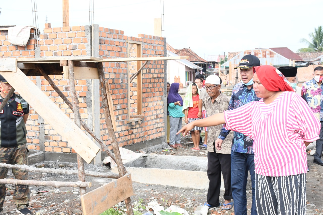 “Sementara Bupati Lahat Cik Ujang SH, tampak menyapa para warga korban kebakaran yang sedang mengawasi pembangunan rumahnya. Progresnya cukup cepat, sejak peletakan batu pertama pada Senin (18/1) lalu. “Harapannya agar cepat selesai agar bisa kembali menempati rumahya,” tutur Bupati.