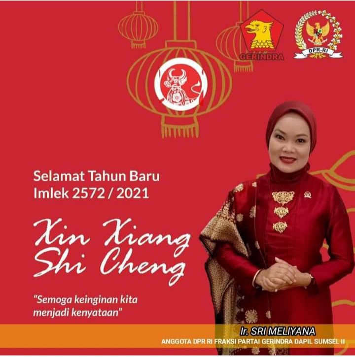 Lahat, wartabianglala.com – Pada moment Tahun Baru Imlek tahun 2021 yang jatuh pada hari ini Jumat tanggal 12 Februari. Anggota Komisi IX DPR-RI dari fraksi Partai Gerindra, Ir. Hj. Sri Meliyana, turut menyampaikan ucapan selamat bernada harapan.