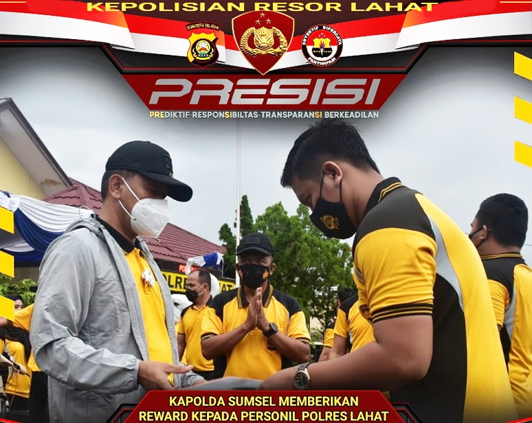 Lalu, lanjutnya, kegiatan Kapolda dilanjutkan dengan memberikan reward kepada 6 Personel Polres Lahat yang berprestasi dan menjadi teladan kepada anggota lainya, sesuai dengan skep kapolda sumsel no. skep: 722/ XII / 2020 tanggal 21 desember 2020, ke 6 anggota adalah sebagai berikut :