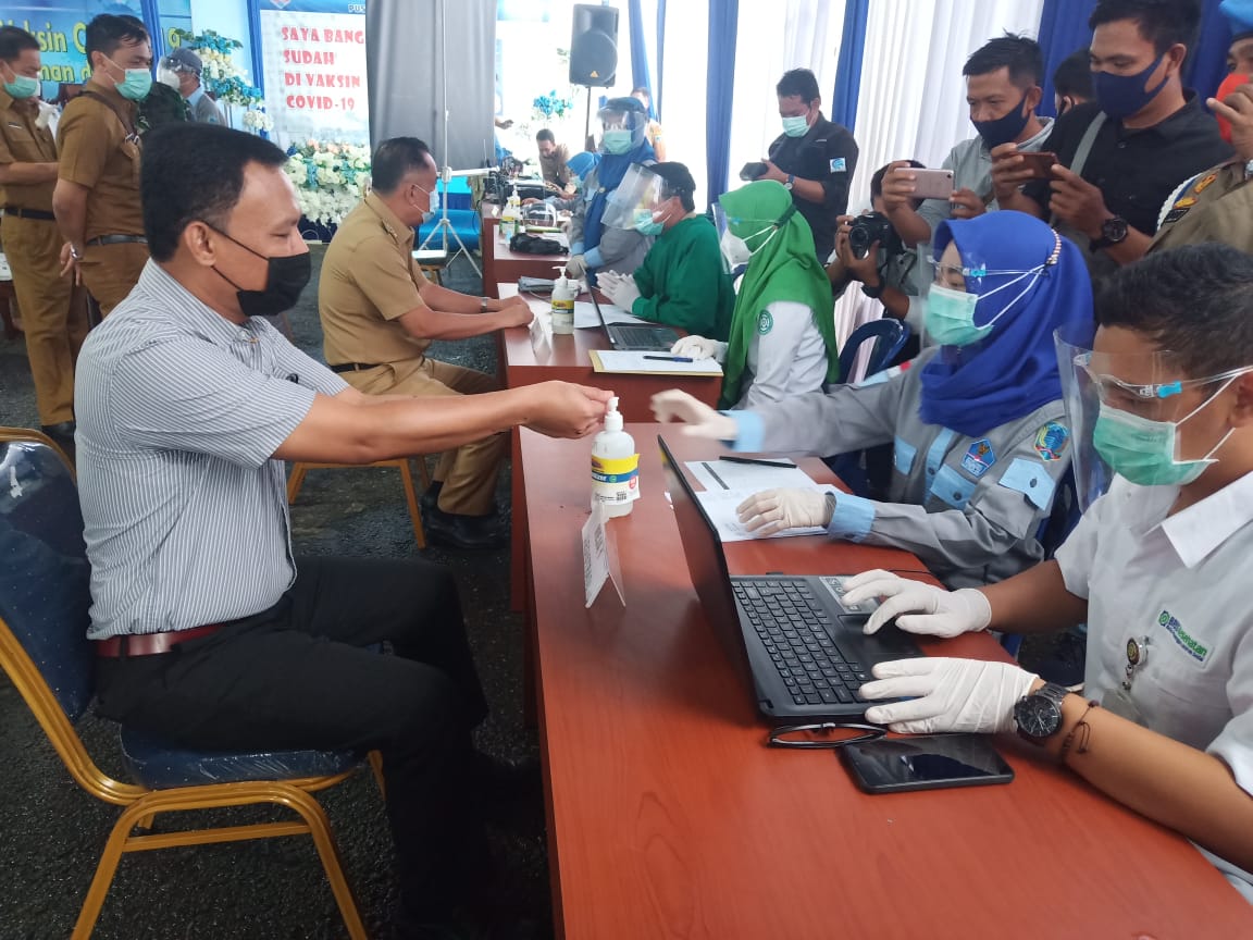 Terpantau di lokasi Bupati Lahat Cik Ujang, SH menjadi orang pertama yang mendapatkan vaksin dosis pada tahap kedua, usai menjalani 14 hari vaksinasi di tahap pertama pada tanggal 01 Januari 2021 lalu yang bertempat Pendopoan Rumah Dinas Bupati Lahat, dan dikuti pejabat Forkopimda.