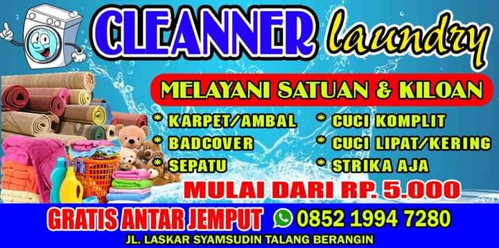 Selain kelebihan diatas Cleaner Laundry juga memberikan harga yang kompetitif serta antar jemput barang yang akan dicuci dengan bebas ongkos kirim.