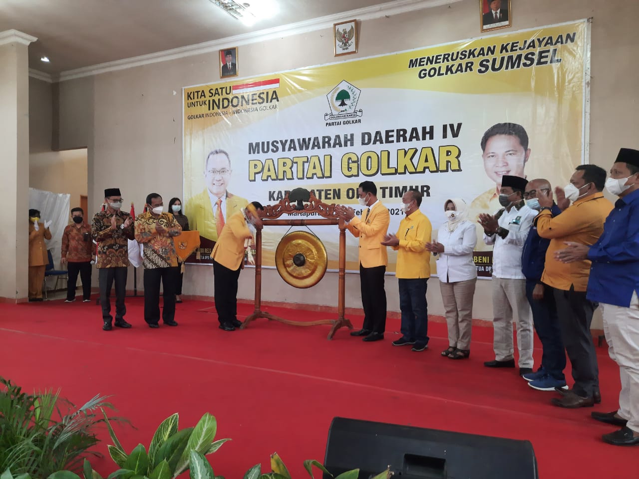 OKUT, wartabianglala.com – Ketua DPD Partai Golkar Sumatera Selatan (Sumsel) Dr Dodi Reza Alex Noerdin, Lic, Econ, MBA. Saat membuka pelaksanaan Musda IV Partai Golkar OKU Timur yang berlangsung pada Minggu (21/02/2021) di Martapura, mengatakan silahkan berkompetisi dengan baik dan bersinergi dengan pengurus Paratai Politik (Parpol) yang lain untuk membangun daerah.