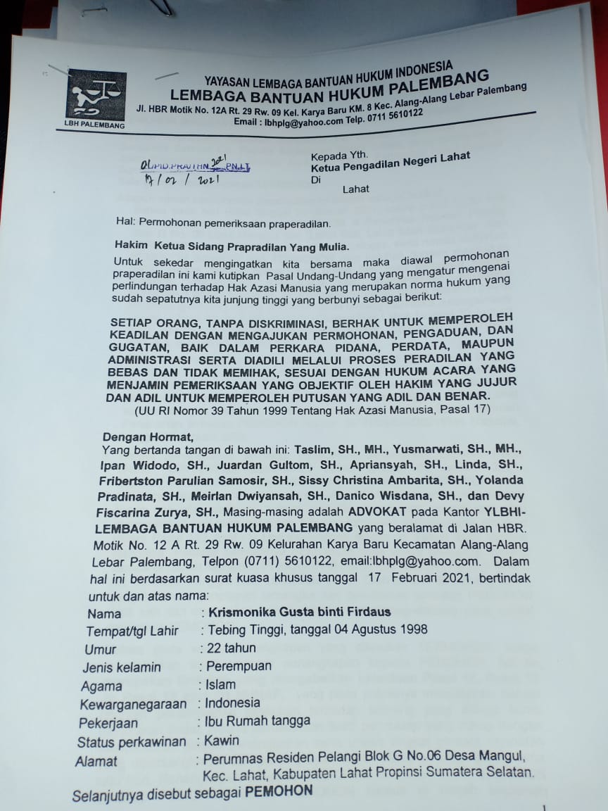 Lahat, wartabianglala.com – Terkait penangkapan yang dilakukan oleh Tim Satresnarkoba Polres Lahat kepada Krismonika Gusta (22) warga Perumnas Residen Pelangi Blok G nomor 06 Desa Manggul Kecamatan Lahat, Kabupaten Lahat, pada 20 Januari 2021 sekitar pukul 17.30 WIB beberapa waktu lalu, sepertinya akan memasuki babak baru, dan bakal panjang.