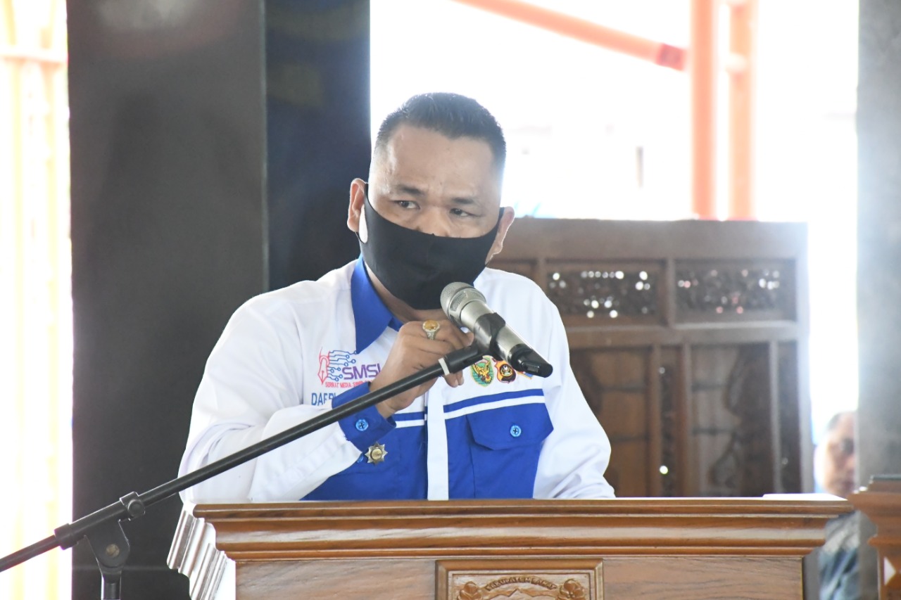 Sambutan Ketua SMSI Lahat Dafri Yozhari FR mengucapkan ribuan terimakasih kepada Bupati Lahat dan Pemerintahan Kabupaten Lahat yang telah mendukung terlaksanaan pelantikan pengurus SMSI Kabupaten Lahat.