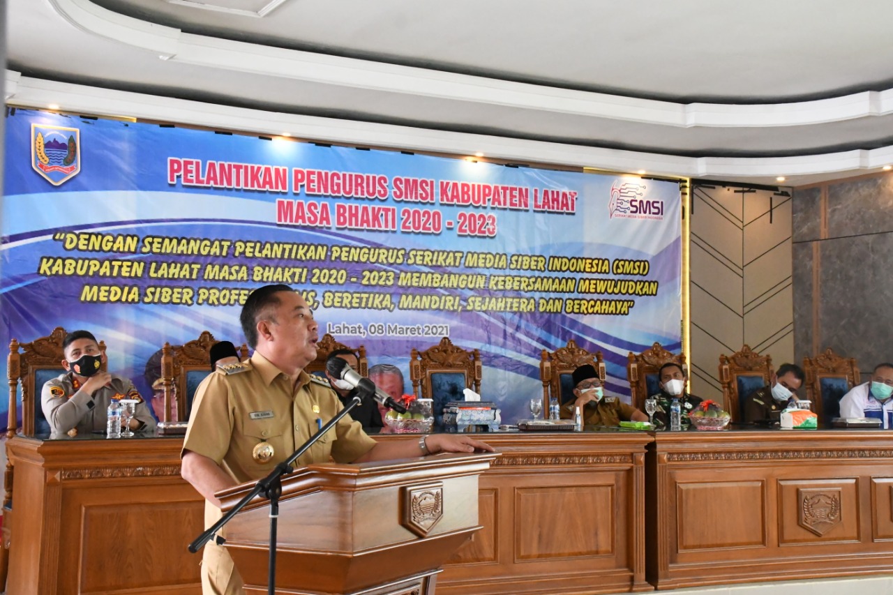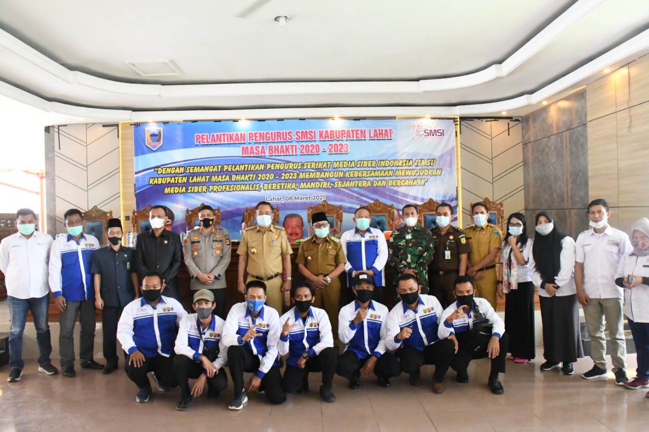 wartabianglala.com – Bertepatan dengan hari jadi Serikat Media Siber Indonesia (SMSI) yang ke- 4 Tahun, pengurus SMSI Kabupaten Lahat resmi dilantik periode 2021- 2024. Kegiatan tersebut dilakukan di Pondopoan Rumah Dinas Bupati Lahat, Senin (08/03).