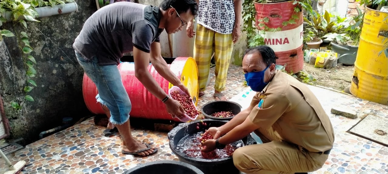 Keterangan: Proses penyortiran buah segar yang baru diantarkan oleh petani kopi