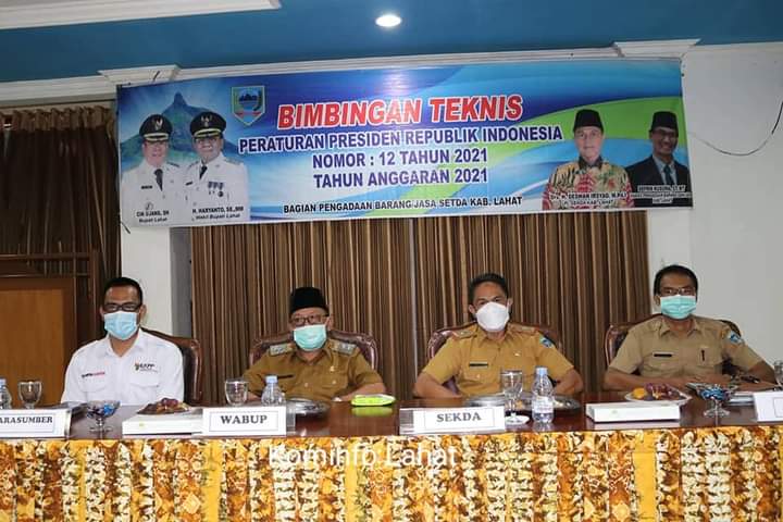 “Dengan mengucapkan bismillahirrahmanirrahim, Bimtek Peraturan Presiden Nomor 12 Tahun 2021 tahun anggaran 2021 Bagian Pengadaan Barang/Jasa Setda Kabupaten Lahat secara resmi saya buka,” ucap H. Haryanto membuka acara.