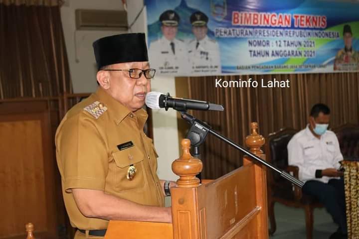 “Dengan mengucapkan bismillahirrahmanirrahim, Bimtek Peraturan Presiden Nomor 12 Tahun 2021 tahun anggaran 2021 Bagian Pengadaan Barang/Jasa Setda Kabupaten Lahat secara resmi saya buka,” ucap H. Haryanto membuka acara.