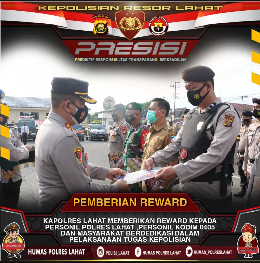 Adapun Rangkaian Apel Upacara Pemberian Penghargaan yaitu pada Kapolres Lahat memulai dengan memimpin apel upacara pemberian penghargaan kepada 26 Personel Polsek Polres Lahat, 1 Anggota Bhabinsa Kodim 0405 Lahat serta Lurah Sari Bungamas Kecamatan Lahat.