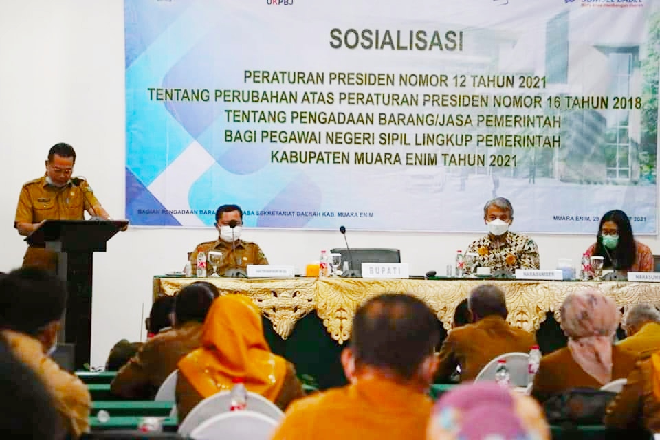 wartabianglala.com – Mewakili Pelaksana Harian (Plh) Bupati Muara Enim, Nasrun Umar, S.H., M.M, Penjabat (Pj) Sekda Muara Enim, Drs. Emran Thabrani, buka sosialisasi Peraturan Presiden (Perpres) Nomor 12 tahun 2021 di Ballroom Griya Sintesa Hotel Muara Enim, Senin (29/03).