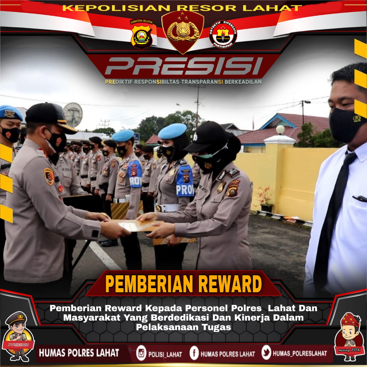 Dengan adanya pemberian reward atau penghargaan kepada personel yang berprestasi, dan masyarakat sipil di harapkan bisa menimbulkan semangat lebih tinggi dalam melaksanakan tugas bagi personel sesuai dengan wujud implementasi program pioritas kapolri menuju polri yang presisi di bidang transpormasi organisasi serta memotivasi prestasi dan kinerja yang baik di bidang operasional maupun di bidang pembinaan sehingga berdampak pisitif bagi kemajuan institusi polri khususnya polres lahat.