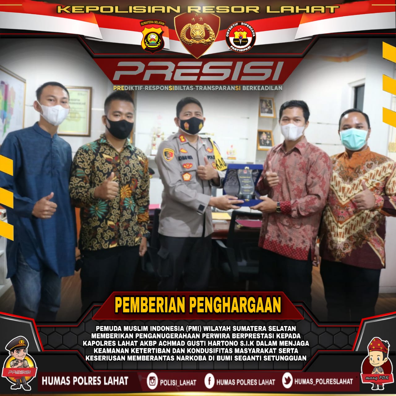 Penganugrahan ini merupakan simbol apresiasi dan dukungan oleh Pemuda Muslimin terhadap Kapolres Lahat AKBP Achmad Gusti Hartono, S.I.K dalam bertugas di wilayah Resort Lahat.