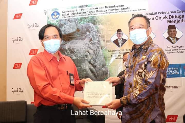 Selanjutnya dalam kesempatan ini, Bupati Lahat Cik Ujang, S.H dalam sambutanya menyampaikan, kabupaten lahat yang mempunyai warisaan budaya yang berasal dari prasejarah hingga kolonial, warisan budaya yang bersifat kebendaan, benda bangunan dan struktur di luar atau di dalam air yang tersebar tidak terkeluali di Sumatera Selatan. Sebuah kerajaan maritim bernama, kerajaan sriwijaya pernah menguasai daratan dan lautan di Sumatera dan sekitarnya.