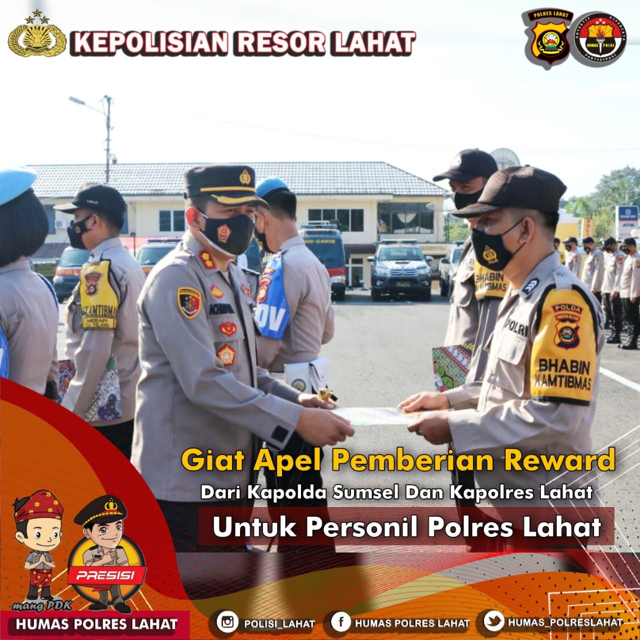 Pemberian reward/penghargaan ini rutin dilaksanakan Mapolres Lahat sebagai bentuk perhatian kepada personel yang berprestasi, dedikasi, kinerja dan kedisiplinan serta loyalitas personel terhadap institusi khususnya Polres Lahat