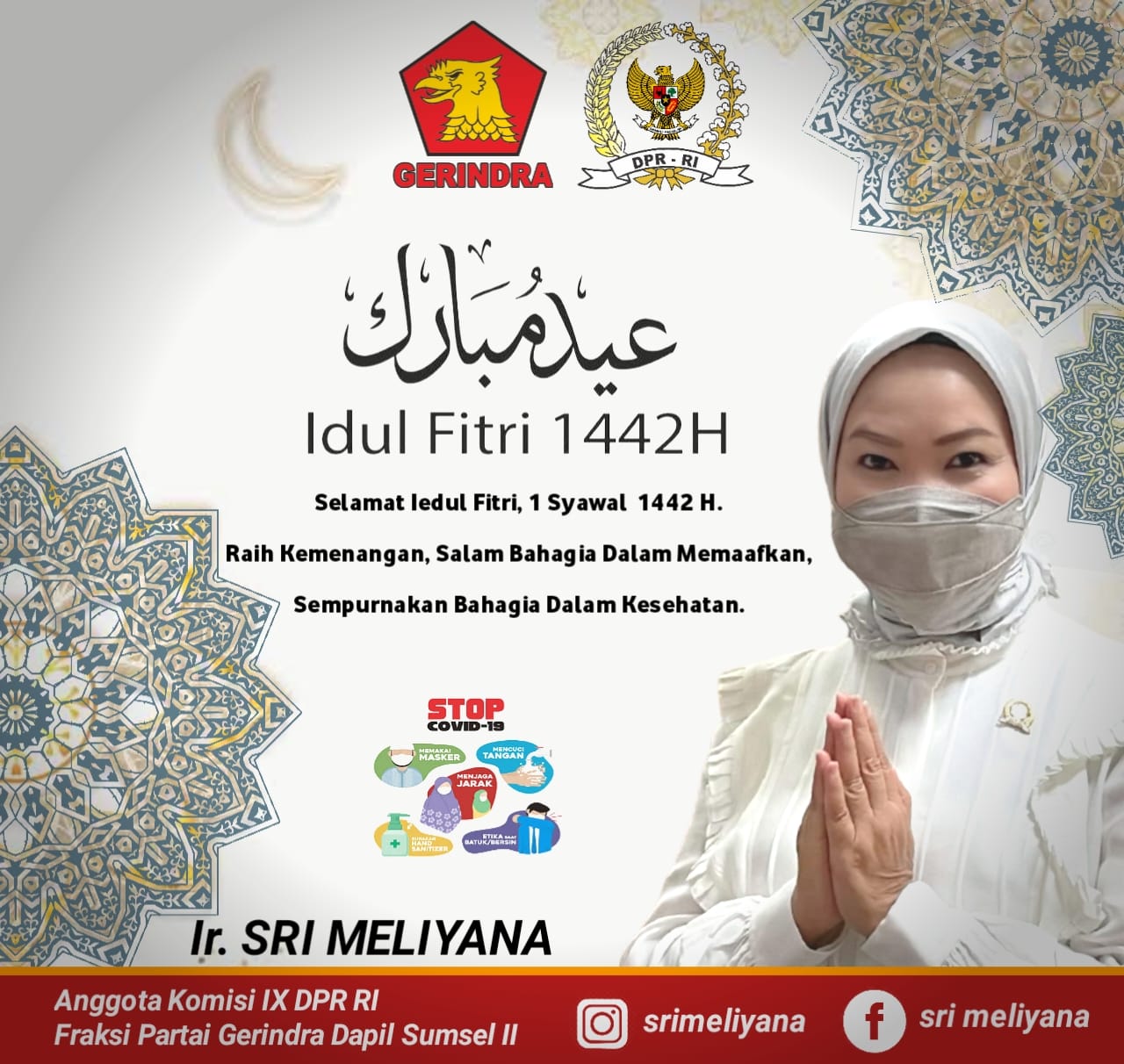 wartabianglala.com – Sehari menjelang Hari Raya Idulfiri 1442 H. Anggota Komisi IX DPR-RI Fraksi Partai Gerindra, Ir. Hj. Sri Meliyana, menyampaikan ucapan untuk masyarakat Indonesia, khususnya masyarakat Kabupaten Lahat–Sumatera Selatan.