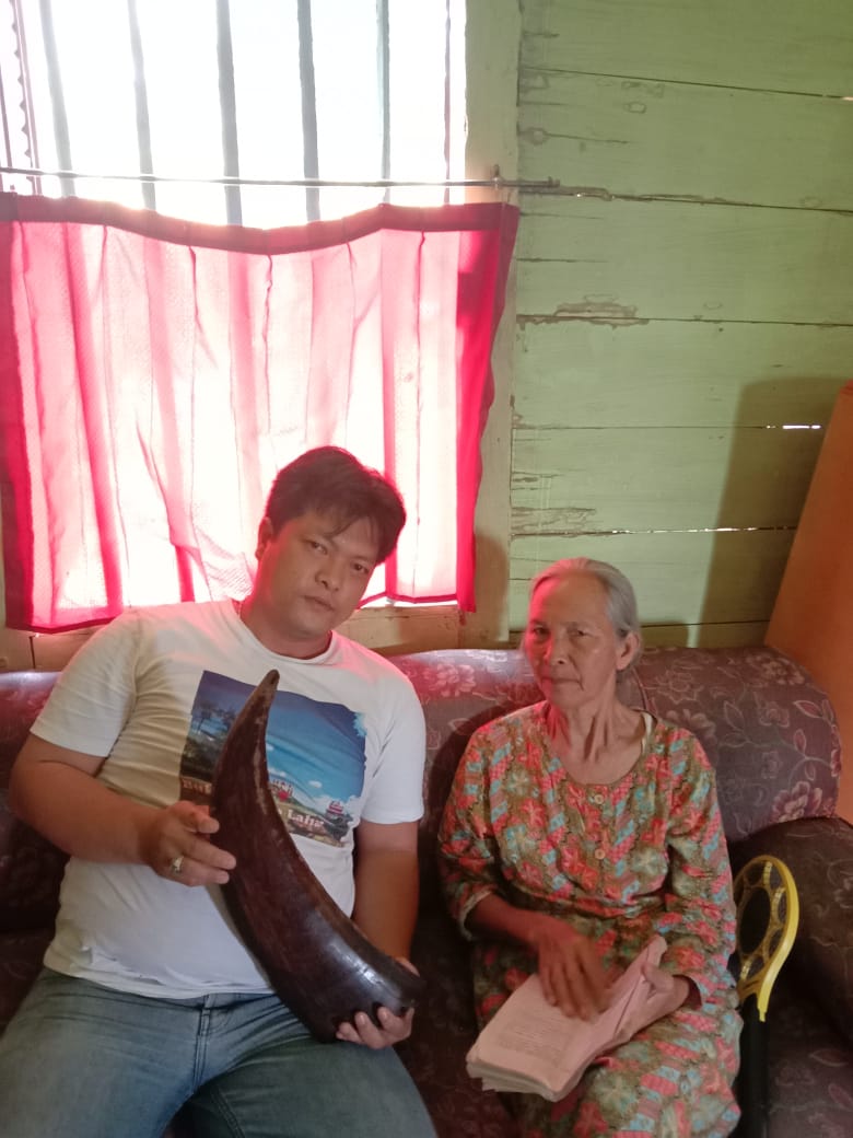 Selanjutnya kami berkunjung ke kediaman keluarga Suhaimi dimana kami berjumpa Yana (66 tahun) dimana terdapat tanduk kerbau yang mempunyai tulisan huruf ulu atau ka ga nga. Prasasti ulu tanduk kerbau ini mempunyai ukuran panjang 48 cm, lebar ujung (lancipnya) 1,3 cm, lebar ujung (pangkalnya) 14,2 cm. Kondisi prasasti masih bagus walaupun ada beberapa bagian terkikis. (Prasasti Ulu Tanduk Kerbau, DR Wahyu Rizky Andhifani S.S, M.M). Sedang lempengan tembaga masa Kesultanan Palembang belum dapat kami temui karena sang pemilik atau yang menyimpannya belum dapat kami temui.