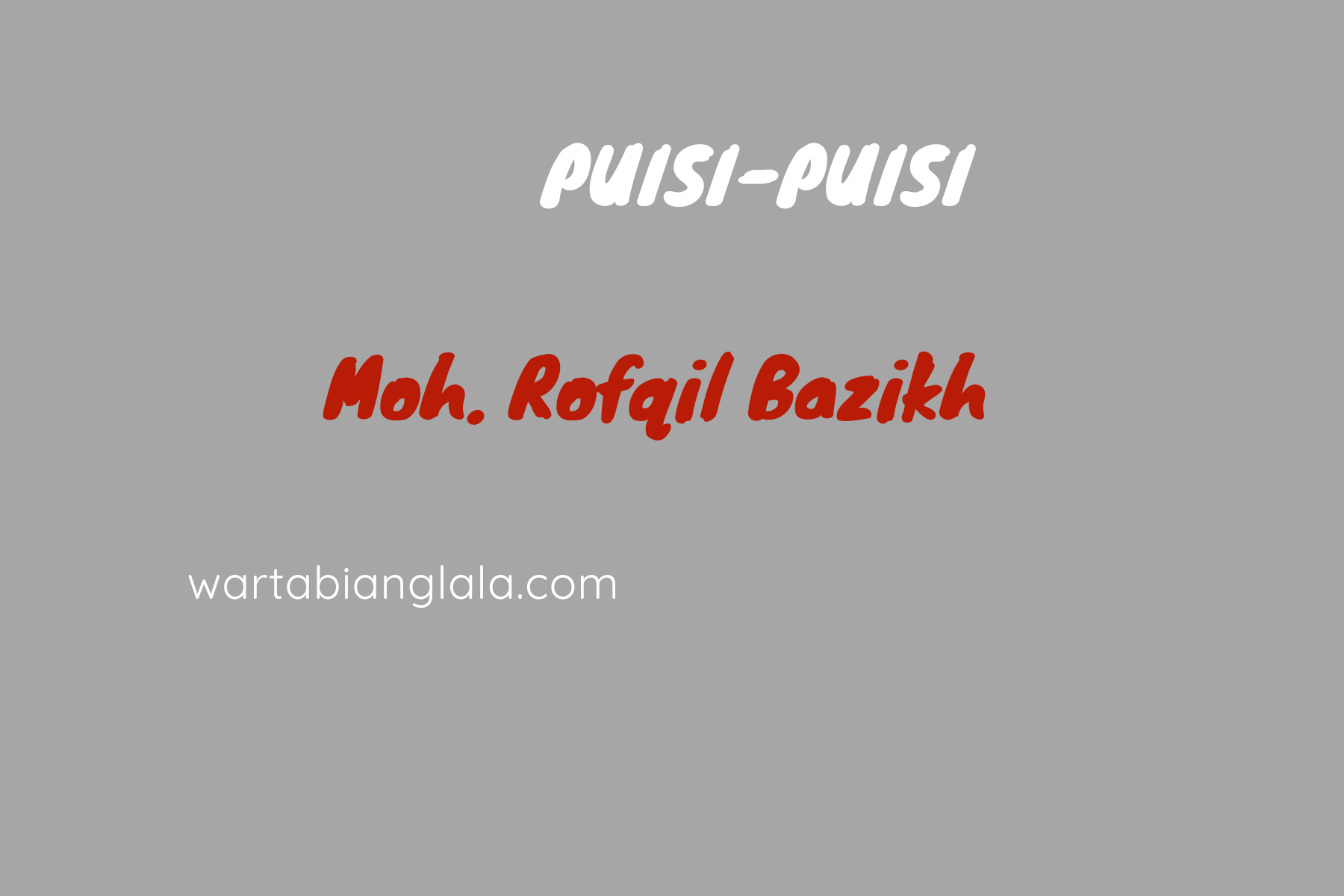 Moh. Rofqil Bazikh merupakan mahasiswa Perbandingan Mazhab UIN Sunan Kalijaga dan bermukim di Garawiksa Institute Yogyakarta. Menulis puisi di pelbagai media cetak dan online antara lain; Tempo, Kedaulatan Rakyat, Suara Merdeka, Tribun Jateng, Minggu Pagi, Merapi, Rakyat Sultra, Bali Pos, Harian Bhirawa, Duta Masyarakat, Lampung News, Analisa, Pos Bali, Banjarmasin Post, Malang Post, Radar Malang, Radar Banyuwangi, Radar Cirebon, Radar Madura, Cakra Bangsa, BMR Fox, Radar Jombang, Rakyat Sumbar, Radar Pagi, Kabar Madura, Takanta.id, Riau Pos, NusantaraNews, Mbludus.com, Galeri Buku Jakarta, Litera.co, KabarPesisir, Ideide.id, Asyikasyik.com, dll.