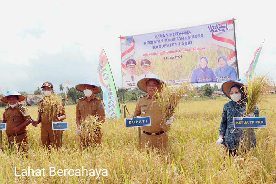 Kepala Dinas Pertanian Kabupaten Lahat Etty Listina SP.MM melaporkan, peningkatan produksi padi dalam kegiatan panen padi Bersama kegiatan Perluasan Areal Tanam Bary (PATB) Tahun 2020 di Desa Tanjung Payang.