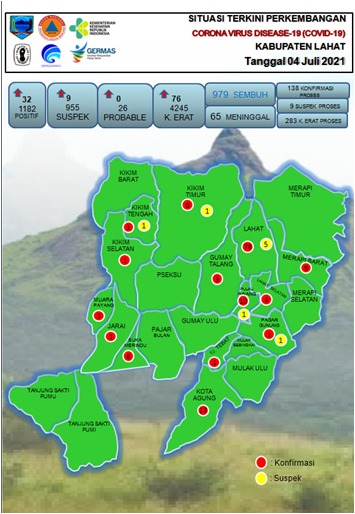 Informasi ini disampaikannya lamgsung melalui saluran WA, Minggu (04/07/2021), dimana berdasarkan update terbaru jumlah terkonfirmasi sejumlah 1.182 orang, meninggal 65 orang, sembuh 979 orang, dan dalam proses sebanyak 138 orang.