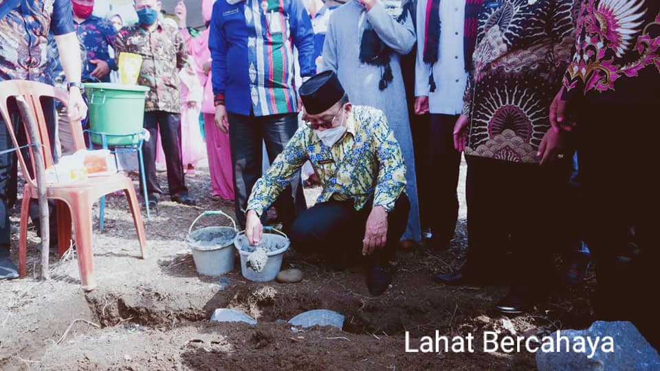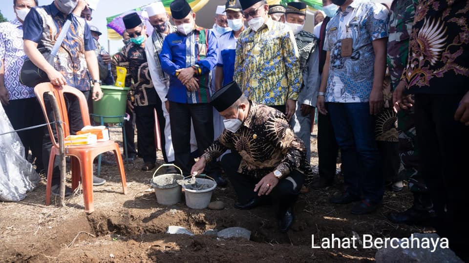 LAHAT, wartabianglala.com – Bupati Lahat, Cik Ujang, S.H. yang dalam hal ini diwakili oleh Wakil Bupati Lahat, H Haryanto, S.E., M.M. melakukan peletakan batu pertama sebagai tanda awal dimulainya pembangunan Pondok Pesantren Babul Hidayah, di Desa Pengentaan, Kecamatan Mulak Ulu. Kamis (12/8/2021).