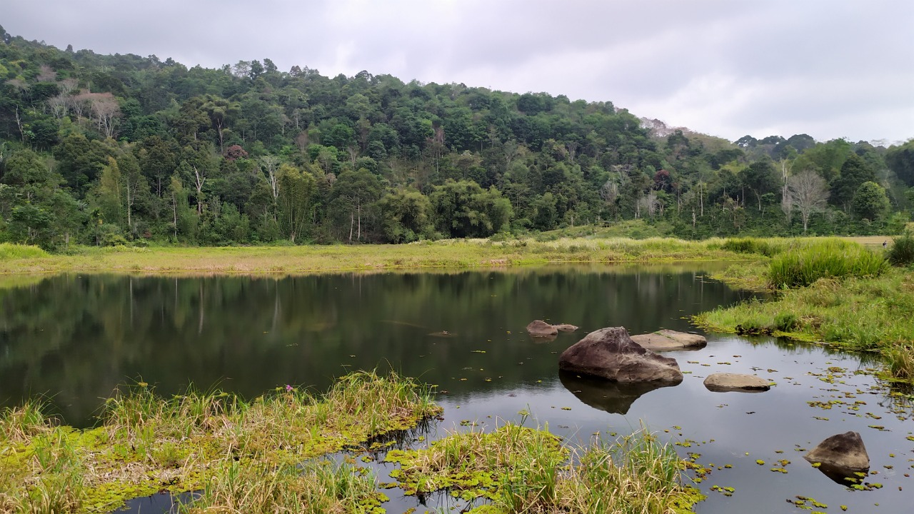 Dari Situs Megalit Batu Beghuk kami menuju Tebat Bukit dan untuk menuju Tebat Bukit kami harus kembali ke desa dan terus mengarah ke tebat yang berjarak sekitar 1 km dari desa dengan menyusuri jalan setapak yang telah di cor beton sehingga perjalanan ke tebat sangat cepat dan mudah. Dari lokasi kami parkir sudah terlihat Tebat Bukit dan berjalan sedikit turun sejauh 10 meter sudah tiba di tepi tebat. Tebat Bukit berada di ketinggian sekitar 781 mdpl dengan luas sekitar 2 ha dan kedalaman hingga 5 meter. Saat ini tepian tebat ditumbuhi beberapa tanaman sehingga hanya bagian kecil tebat yang terlihat ada airnya. Sebelumnya beberapa tahun lalu seluruh permukaan tebat bebas dari tumbuhan dan penuh ditutupi air. Kala itu masyarakat setiap minggu mengadakan gotong royong membersihkan tebat sehingga seluruh bagian tebat dapat dijangkau dengan menggunakan rakit atau perahu, banyak masyarakat yang datang untuk mancing atau sekedar untuk refreshing. Saat kami berada di area tebat terlihat ada yang mancing di tengah tebat dengan menggunakan rakit karena di tebat ini masih ada berbagai jenis ikan seperti gabus, emas, mujaer, pirik, bilis, braskap, palau, kalang, belut dan labi. Sebelumnya juga banyak liling (sejenis keong). Dan liling Tebat Bukit sangat digemari masyarakat akan tetapi sekarang sudah langka. Tak lupa kami berfoto bersama untuk mengabadikan keberadaan kami disini sebelum kembali ke desa.