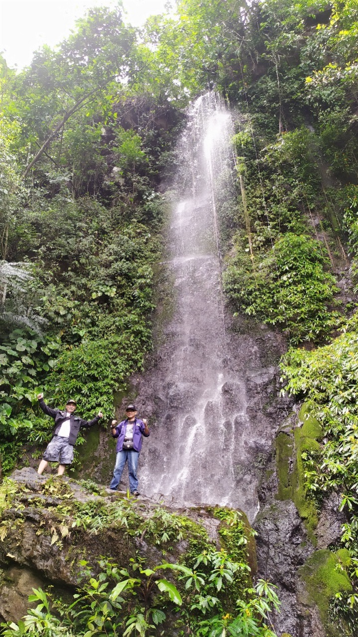 Setelah kami menyampaikan maksud dan tujuan kami berangkat dari rumah kepala desa menuju arah Selatan desa atau ke arah Bukit Barisan yang terlihat berjajar berwarna hijau membentang panjang. Kami berboncengan sepeda motor menyusuri jalan setapak yang telah di cor beton sejauh 1,5 km melintasi persawahan dan perkebunan kopi dengan kontur jalan sedikit menanjak tetapi tak ada tanjakan yang terjal dan ektrim. Kemudian kami melintasi jalan setapak yang masih berupa jalan tanah sejauh sekitar 400 meter dan tibalah di pondok Iwan. Disini kami parkir motor dan melanjutkan berjalan kaki dengan menyusuri kebun kopi. Kami berjalan di sela-sela pohon kopi dengan kontur jalan menanjak menuju air terjun atau cughup sejauh 200 meter.