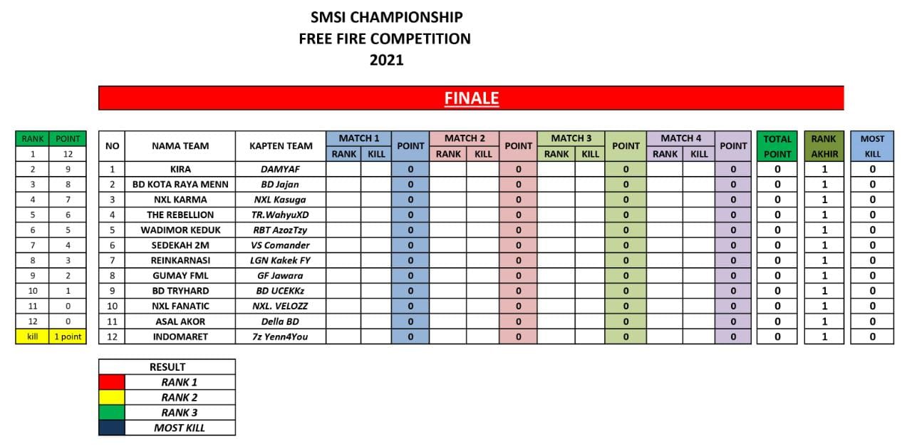 wartabianglala.com – Setelah babak qualifikasi yang melibatkan 20 tim dilangsungkan tadi malam, maka malam ini akan dilangsungkan grand final SMSI Lahat Free Fire Championship 2021. Ada 12 tim yang berhasil meloloskan diri menuju pertarungan menuju puncak juara.