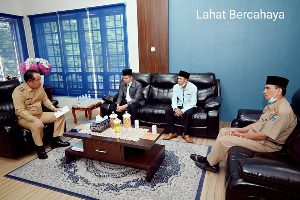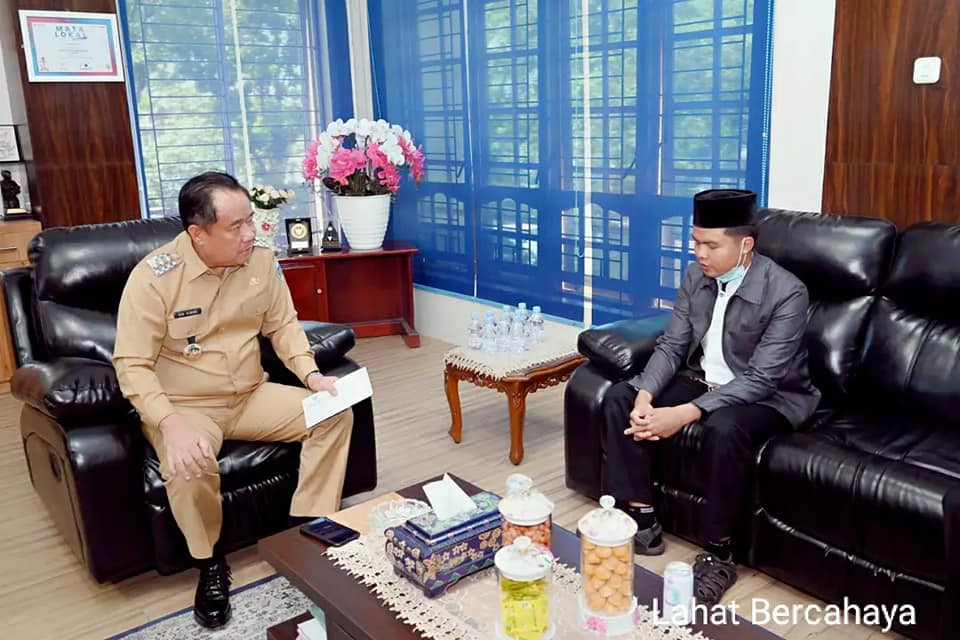 LAHAT, wartabianglala.com – Bupati Lahat,Cik Ujang.SH terima kedatangan Muhammad Thoriq Aprian. (Al-hafidz) di ruang kerja Bupati Lahat, Selasa (7/9/2021). Kedatangan M. Thoriq Aprian asal Kabupaten Lahat yang mendapatkan Beasiswa ke Negara Yaman. M.Thoriq Aprian umur 19 Tahun Alumni pondok pesantren Al-Ittifaqiah Ogan Ilir. M.Thoriq Aprian bersama Pamannya Firmansyah, Ibu dari M. Thoriq Aprian berasal Desa Karang Indah Kecamatan Merapi Barat, Bapak asli Kecamatan Jarai.
