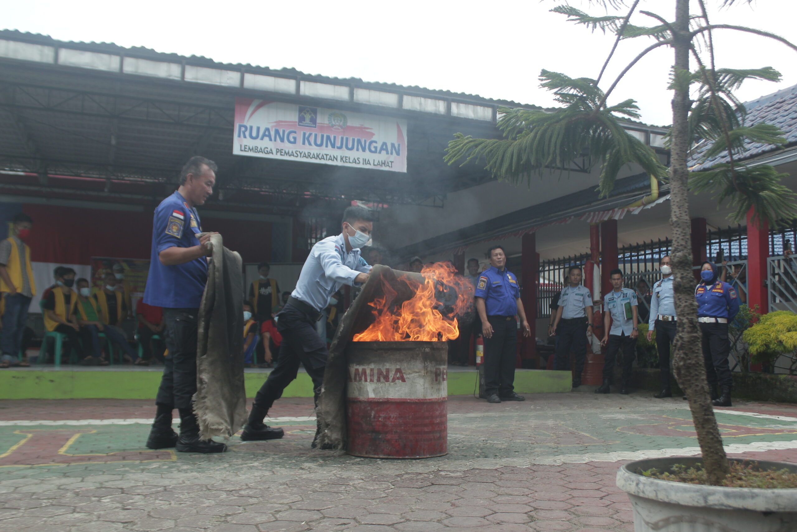 Kemudian, acara dilanjutkan dengan Petugas dan warga Binaan yang melakukan pelatihan simulasi pemadam kebakaran dengan berbagai cara. Yaitu dengan menggunakan Blanket (kain) basah dan apar.
