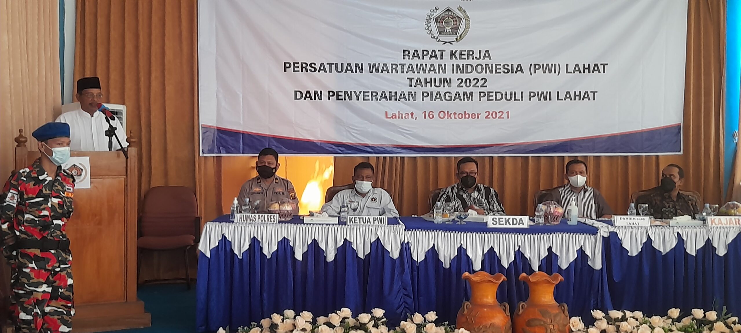 Rapat kerja tahun 2022 PWI Lahat, dikemas dengan penyerahan piagam peduli PWI kepada Unsur Forkompinda Kabupaten Lahat serta pemberian santunan kepada Anak- anak yatim piatu.