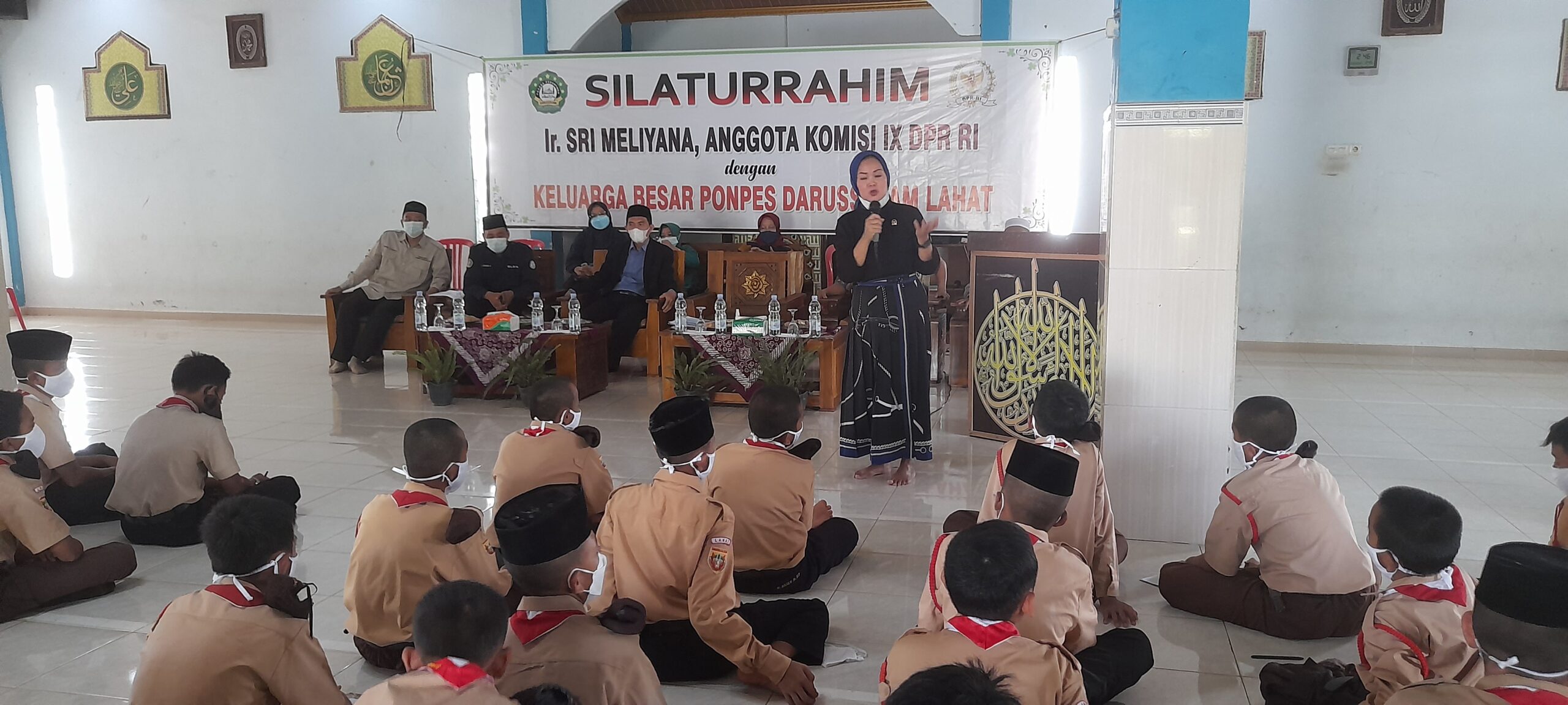 wartabianglala.com – Dalam lawatan ke Balai Latihan Kerja (BLK) Multimedia Pondok Pesantren (Ponpes) Darussalam, Desa Keban, Kecamatan Lahat, Kabupaten Lahat, anggota komisi IX DPR-RI fraksi Partai Gerindra Ir. Hj. Sri Meliyana tidak lupa bersilaturahmi dengan para santri. Sabtu (23/10/2021).